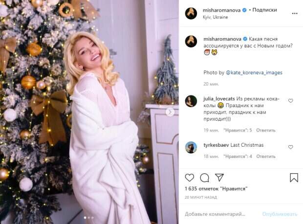 Кроме того на ногах у артистки были милые тапочки со звериной мордашкой и ушками, а на некоторых кадрах певица куталась в молочный плед. Томная Романова покрутилась у елочки в самых разнообразных позах, демонстрируя свои изящные женские прелести. "Какая песня ассоциируется у вас с Новым годом?