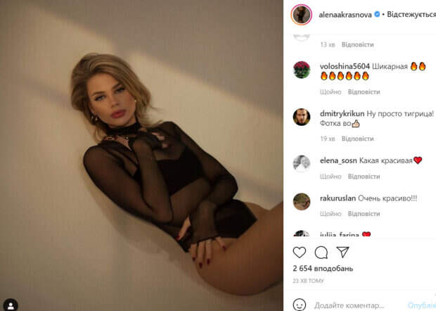 Через тонкую ткань просвечивалось нижнее белье девушки. Яркий макияж делал ее образ невероятно соблазнительным. Алена положила одну руку на грудь, а другую – на бедро. Кадр получился манящим и страстным. Сразу стало понятно, чем модель заманила в свои сети хулиганистого Никиту Преснякова. В комментариях девушке оставили массу приятных слов. «Очень классная», «Какая же ты красивая», «Супер. Лучшая», «Супер красотка», «Ну просто тигрица! Фотка во!», «Моя любимая фотка теперь», «Ваааау», «Ты куколка», - пишут пользователи сети. Как известно, Алена Краснова и Никита Пресняков поженились в 2017 году. На их свадьбе присутствовало немало звезд. Ранее мы писали, что Краснова восхитила безупречной фигурой в приспущенном наряде. Девушка выбрала необычный топ, который подчеркнул ее пышный бюст и тонкую талию. Шею девушка украсила необычным ожерельем. Напомним, что подвыпившая невестка Пугачевой в опасном мини устроила разврат в лифте: "Пятничное настроение". Как сообщала Politeka, юной невестке Пугачевой срочно понадобилась помощь врача, что произошло: "На лице появились...". Также Politeka писала, что внук Аллы Пугачевой ошарашил срочным обращением из больницы, что произошло: "Папаша. ..".