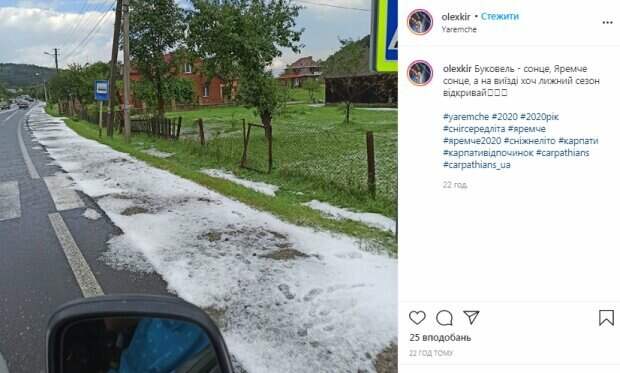 Снег зафиксировали в столичном районе Зюзино, расположенном на юго-западе города. Ранее мы писали, что на Украину обрушилась очередная аномалия – наступила зима посреди лета В Яремче на Западной Украине выпал сильный град, больше напоминающий снег. Об этом стало известно из соцсетей украинцев, которые в данный момент находятся в регионе. Так, одни из жителей Яремче наткнулись на настоящие сугробы, когда вернулись домой. Женщина на видео стала загребать руками снег, показывая его на камеру. «В Яремче наступила "зима" посреди лета. Буквально за несколько минут градом засыпало так, что все вокруг стало белым, как в снегу, а на подворьях образовались немалые сугробы. Местные говорят, что градом посбивало даже птиц», - отмечается в сообщении. Еще одни пользователи сети отметили, что аномалия наблюдалась именно в Яремче. А вот в Буковели ничего такого не было. «Буковель - солнце, Яремче солнце, а на выезде хоть лыжный сезон открывай», - пишут люди. Напомним, что Днепр кишит медузами, аномалия разгадана: "Когда жалят - впрыскивают...". А еще Politeka писала, что двойной смерч пронесся вблизи популярного украинского курорта: впечатляющие кадры. Также Politeka сообщала, что природа натворила беды на Одесчине: "Ущерб на миллиарды", о чем речь.