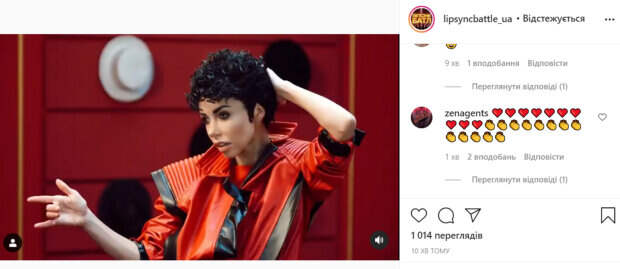 На фото Катерина предстала с короткой черной стрижкой и ярким выразительным макияжем, который превратил ее в копию Майкла Джексона. Артистку одели в красную куртку с черными вставками. Кроме этого, Кухар приняла участие в челлендже, который организовало шоу. Она спародировала известную песню, сидя на диване. Стоит отметить, что участниками «Липсинк батл» уже стали Елена Кравец из «Квартал 95», Маша Ефросинина, Женя Кот, Павел Зибров, Ираклий Макацария и другие звезды. Ведущими шоу, в котором соберут около 36 звезд, станут Тина Кароль и Потап. При этом многие из звезд будут пародировать артиста противоположного пола. Так, Кот преобразится в Настю Каменских, а Маша Ефросинина в Макса Барских. В комментариях зрители с восторгом отреагировали на участников шоу. Напомним, что Кухар из «Танців з зірками» в черных кружевах разгорячила видом в постели: «Сладких...». Как сообщала Politeka, Кухар из "Танців з зірками" впечатлила видом в юности, в сети всплыло редкое фото: "Стала даже...". Также Politeka писала, что Кухар с "Танців з зірками" в прозрачном платьице ухватил за руку полураздетый муж: "Воспоминания".