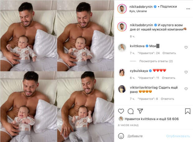 Вскоре они поженились и у них родился сын Лев. Так, на этот раз Никита Добрынин опубликовал новое фото на своей странице в Инстаграм. На кадре "Холостяк" без стеснения показывает домашную обстановку. Он лежит на кровати без одежды и держит на руках своего сына - Льва. "И крутого всем дня от нашей мужской компании", - подписал фото Никита Добрынин. Поклонники засыпали "Холостяка" и его сына приятными словами в комментариях: "На мамочку похож", "Улыбка мамина", "Копия мамы", "На Дашину маму похож", "Обожаю вашу семью", "Какие мужчины", "Аааа, какие же классные", "супер! надо было еще котика взять в Вашу мужскую компанию", "Большой вырос", "Ну улыбка папина и ямочки эти, класс". Ранее сообщалось, "Холостяк" Добрынин публично подколол красотку-жену, которая родила ему сына: "Это точно про мою…" Также, жена "Холостяка" Добрынина засветила формы после рождения сына: "Муж не упускал возможность..." Politeka рассказывала, "Холостяк" Добрынин раскрыл стоимость своего отдыха в Турции, сумма зашкаливает: "Можем наконец-то"