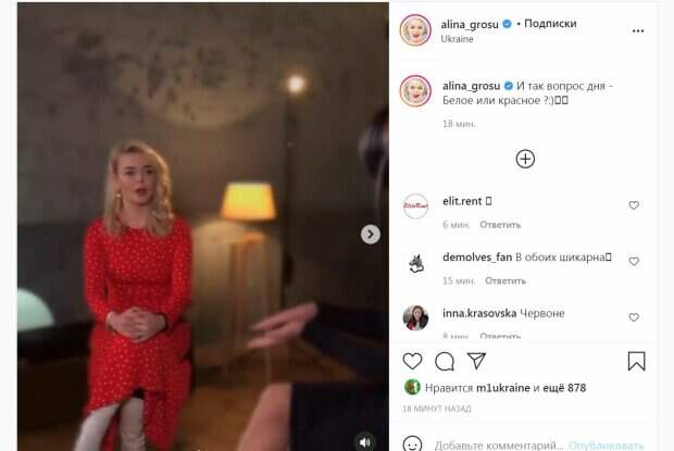 Так, красотка на первом видео предстала в красном платье, которое подчеркнуло ее пышную грудь и тонкую талию. Ее волосы были аккуратно уложены, волнистые локоны спускались с плеч. На другом видео Алина предстала в белом платье, также красиво подчеркнувшем все достоинства ее фигуры. "И так вопрос дня - Белое или красное ?:)