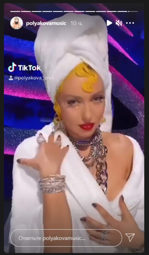 При этом на голове у певицы было полотенце, скрученное, как чалма, а на шее - массивные украшения в виде цепей. Полякова эпатировала своим поведением, схватив себя за бюст, задирая ножку, виляя бедрами и посылая воздушные поцелуйчики. И все это раскованная звезда делала перед носом у коллеги по проекту 47-летнего Андрея Данилко, известного как Верка Сердючка. Сначала последний с инетресом наблюдал, как певица дрыгается под музыку, выставляя напоказ свои "лакомые" части тела, но в конце концов, не выдержал и рассмеялся, прикрыв рукой глаза. Ольга, к слову, также прыснула от смеха. Позднее Полякова поделилась еще одним экстравагантным образом, в котором появилась в финале шоу. На ней был серебристо-красный комбинезон, будто "оживший" из какого-то фантастического романа. Многие пользователи заметили, что певица будто лет на 10 моложе стала. "вы выглядите как 20 летняя девочка