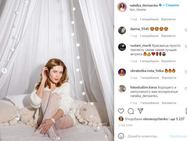 Девушка приспустила кофту, обнажив зону декольте и плечи. Образ получился очень женственным и романтичным. При этом он был довольно соблазнительным, ведь актриса позировала без штанов. «Воскресенье. У меня такое выходное воскресенье, что выходнее не придумаешь. Сегодня весь день дома. На следующей неделе начинаются приключения, поэтому это ничегонеделание будет особо ценно», - подписала фото звезда. В комментариях красотке оставили массу приятных слов. «Красавица, просто прелесть, самая самая лучшая актриса», «Изысканно и элегантно. Очень красивый цвет волос, без оттенка красного, а именно золотистый», «Наталья, Вы так похожи на актрису Ирину Алферову в молодости. Вы красавица!», «Красивое утро в Наташи», - пишут пользователи сети. Как известно, Наталье Денисенко 31 год. Она снимается в кино и сериалах с 2011 года. Широкую известность ей принесла роль в «Крепостной». Напомним, что зараженная вирусом звезда-красотка "Крепостной" сообщила о новых осложнениях: "Сил нет...". Как сообщала Politeka, красотка-звезда "Крепостной" Денисенко в кружевном белье поделилась секретом: "Жизнь моего мужа со мной...". Также Politeka писала, что раздетый Цымбалюк из "Крепостной" заставил сердца украинок биться чаще: "Капец, ты мощный".