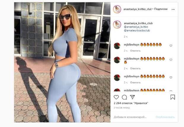 Известная модель Анастасия Квитко, которую называют русской Кардашьян, показала себя на прогулке На фото красотка позировала в топе и лосинах. Анастасия дополнила образ очками, которые закрыли глаза от солнца. В таком виде Квитко отправилась гулять. Девушка для снимка развернулась боком, показывая идеальную пятую точку, приковав к себе взгляды фанатов, благодаря чему кадр вышел очень зажигающим.