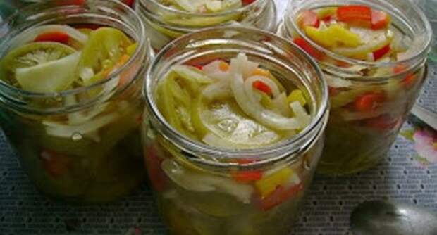 Салат из зеленых помидор на зиму без стерилизации — это вкусная и простая заготовка. А как же он хорош зимой, как закуска на праздничный стол или вприкуску с картофельным пюре! Не передать словами, тут надо пробовать. И, в отличии от многих других заготовок, этот салат не отнимет у вас много времени и сил.