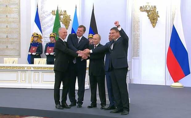 В пятницу, 30 сентября, в Кремле были подписаны договоры о вхождении ЛНР, ДНР, Запорожской и Херсонской областей в состав Российской Федерации. Документы подписали Владимир Путин, главы ЛНР и ДНР Леонид Пасечник и Денис Пушилин, а также руководители Запорожской и Херсонской областей Евгений Балицкий и Владимир Сальдо соответственно.