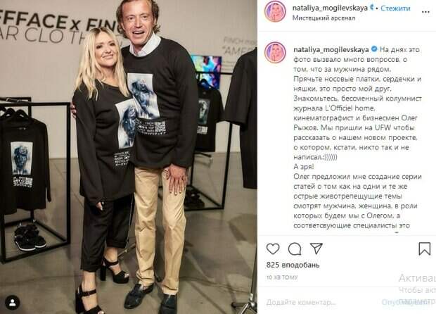 Знакомьтесь, бессменный колумнист журнала L’Officiel home, кинематографист и бизнесмен Олег Рыжов», - говорится в сообщении. Также Могилевская рассказала о том, что бизнесмен предложил ей попробовать интересный опыт. «Олег предложил мне создание серии статей о том как на одни и те же острые животрепещущие темы смотрят мужчина, женщина, в роли которых будем мы с Олегом, а соответсвующие специалисты это оценят и прокомментируют. Темы любовь, смерть, измена, наркотики, секс и прочие. Это может быть интересно и поучительно для всех», - рассказала она. Как сообщалось до этого, 45-летняя украинская певица Наталья Могилевская закрутила роман с очередным красавчиком, который уж больно кого-то напоминает. В сети появилось совместное фото артистки с бизнесменом-миллионером Олегом Рыжовым. Снимок опубликован в Инстаграм журнала "Viva!". Напомним, помолодевшая Могилевская без стыда посветила бюстом в наряде с декольте. Как сообщала Politeka, помолодевшая Могилевская вскружила голову пикантным видом в гримерке. Также Politeka писала, что Могилевская сразила наповал кадрами с Дорофеевой, Джамалой и Поляковой.