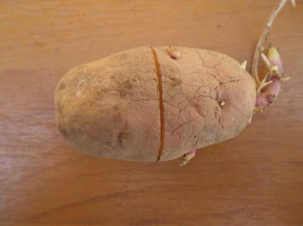 Делать процедуру следует ДО того, как появятся первые росточки, то есть, вот сейчас, в начале апреля, сроки будут самыми оптимальными. Если вы еще только планируете достать картошку из погреба на проращивание, либо уже достали – но она пока еще «не проснулась», то сделать надрезы на картофеле вы еще успеваете.