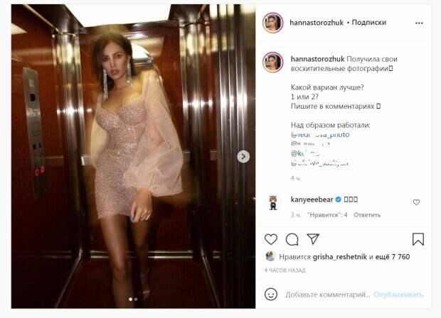 В результате красотка набрала 16 лишних килограммов. Прийти в прежнюю форму Анне помогли отказ от сладкого, тренировки в зале пять раз в неделю, LPG-массаж и правильный настрой. Сейчас девушка может похвастаться идеальной фигурой, которую демонстрирует в своем Инстаграм. Так, в новом посте красотка появилась в сияющем мини-платье. Наряд был с вырезом, а его длина позволила полюбоваться ножками возлюбленной "холостяка". Снимок был представлен в двух вариантах. "Получила свои восхитительные фотографии Какой вариант лучше? 1 или 2? Пишите в комментариях ⬇️", - поинтересовалась Богдан. За четыре часа публикация собрала более 7000 лайков и много комментариев. "