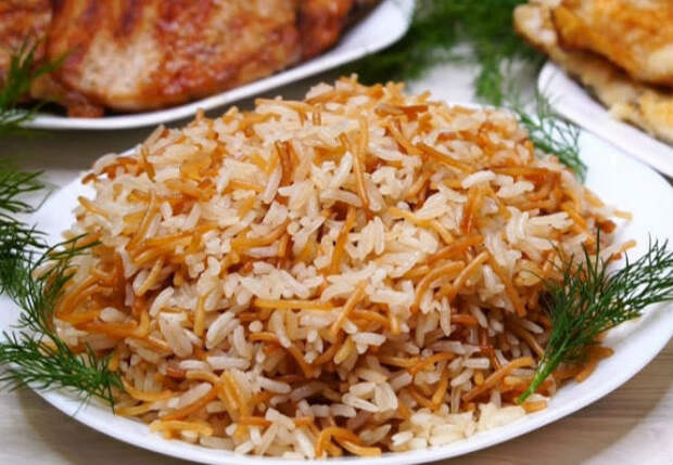 Удивительный рецепт подсмотрели в знаменитом турецком ресторане. Такой гарнир, пилав с вермишелью, подойдет вообще к любому блюду, да и готовится он, что называется лениво. Продуктов нужно для пилава совсем немного. Вермишели 100 граммов, риса граммов 200, воды 400 миллилитров, соли половину чайной ложки, сливочного масла 40 граммов.