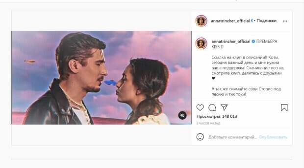 Известный исполнитель, бывший солист "Время и стекло", Алексей Завгородний (Позитив), появился в компании известной красотки 19-летняя популярная украинская блогерша, звезда "Скаженого весілля 3", Анна Тринчер сняла клип на заводную песню "KISS", пишет Politeka.net. Об этом красотка сообщила в своем Инстаграм, разместив часть видео (Чтобы посмотреть, доскролльте до конца страницы) К слову, сейчас на страницу звезды интернета подписаны 1,6 миллиона пользователей сети.