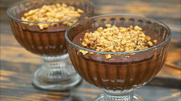 Ингредиенты: 500 мл молока 60 г сахара 20 г муки 20 г какао-порошка один желток 80 г шоколада 20 г сливочного масла Десерт получается в меру сладким. Поэтому добавляйте сахар по вкусу. Также пудинг можно приготовить без желтка, но с ним он получается очень нежным.[caption id="attachment_51652" align="aligncenter" width="1266"] Простой десерт за 5 минут[/caption]Десерт готовится очень быстро, поэтому заранее подготовьте стаканчики.
