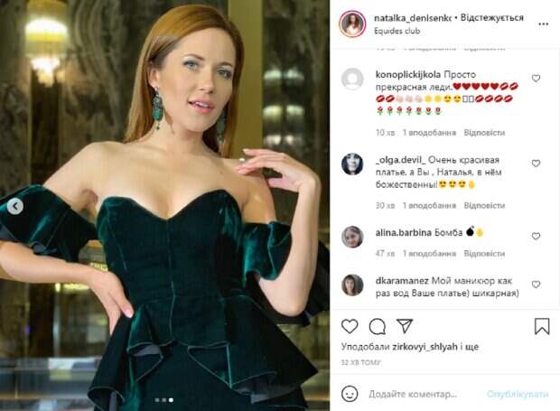 На новых фотографиях Наталья позирует в интересной локации со ступеньками. Перед камерой звезда появилась в роскошном зеленом платье бархатной фактуры и необычного фасона. Этот наряд красиво подчеркнул стройную фигуру и изящное декольте красотки. Ее волосы аккуратно уложены, а на лице элегантный макияжа, дополняют образ оригинальные зеленые серьги. В подписи к фото Денисенко написала: "Этот пост посвящён моему сегодняшнему бархатному зелёному платью. Да, у женщин так бывает. Правда, девочки?". Поклонники тут же принялись комментировать снимки звезды: "Шик и красота, шикарная красавица", "Шикарная", "Вы шикарны", "Как вам идет этот цвет", "Какая вы красивая девушка", "Просто прекрасная леди", "Очень красивая платье, а Вы, Наталья, в нём божественны!". Напомним, Звезда "Крепостной" Денисенко вышла на прогулку в элегантной юбке с разрезом: "Просто огонь". Как сообщала Politeka, Звезда "Крепостной" Денисенко нарядилась в свадебное платье и "сбежала" к морю: "Особые эмоции". Также Politeka писала, что Звезда "Крепостной" Денисенко в корсете и шляпе удивила новой фотосессией на песке: "Богиня".