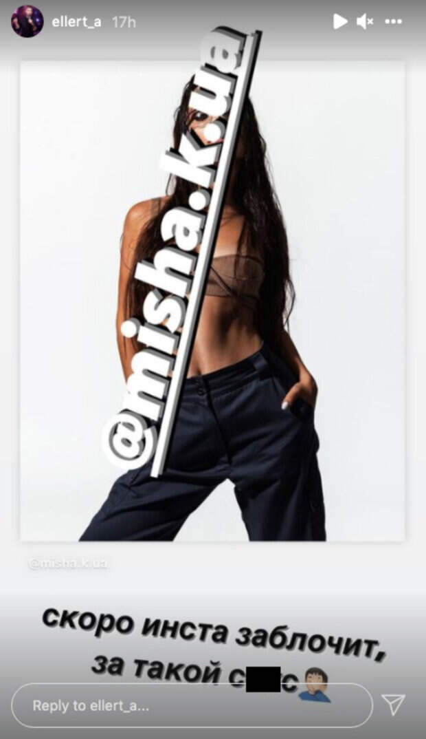 Поклонники не верят их разрыву, и верят, что пара всё еще вместе. На своей странице в Инстаграм Александр Эллерт опубликовал "угрозу" для своей бывшей избранницы. Он написал, что скоро актрису заблокируют в Инстаграме за такого рода фотографии. "Скоро инста заблочит, за такой с**с", — прокомментировал Александр Эллерт. Напомним, что недавно Ксения Мишина опубликовала необычное для себя фото на своей странице в Инстаграм. Актриса показала себя в дерзком образе на кадре. На ней коричневый мини-топ, черные брюки и прозрачные квадратные очки. И вот так выглядит фото, из-за которого Александр Эллерт пригрозил Мишиной: Ранее сообщалось, "Холостячка" Мишина в пиджаке без ничего прикрыла прелести густой шевелюрой: "Профессия актер требует..." Также, судья "Україна має талант" Мишина покорила фигурой круче, чем у Меган Фокс: "Всегда в выигрыше" Politeka рассказывала, Эллерта после ссоры с Мишиной засекли с известной ведущей: тоже брюнетка с длинными волосами