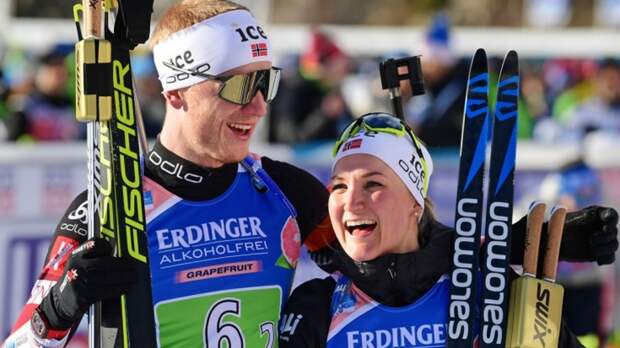 Йоханесс Бе и Марте Рейселанд завоевали победу в сингл-миксте на ЧМ по биатлону.