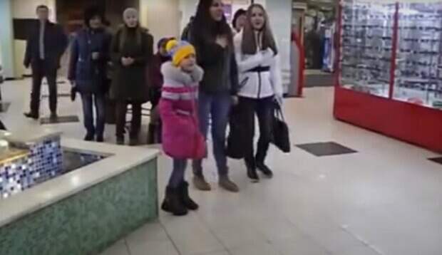 Девочка исполнила гимн Украины посреди торгового центра В одном из супермаркетов Краматорска маленькая девочка начала петь гимн Украины, на что сразу же получила реакцию от посетителей. Видео опубликовали местные жители в YouTube. Посетители сначала удивленно посмотрели на ребенка, но потом подхватили ее настрой и начали петь вместе.