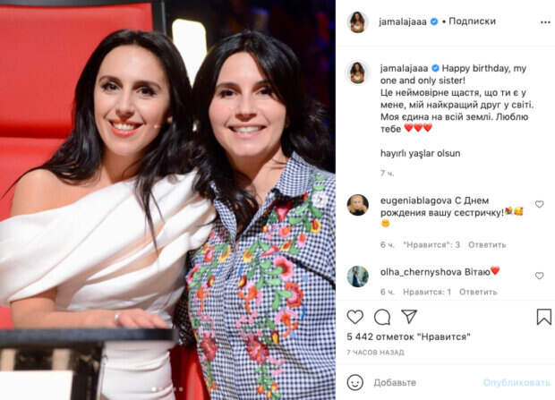 Девушка активно ведет социальные сети и делится с поклонниками моментами из своей жизни. На этот раз артистка опубликовала серию фото на своей странице в Инстаграм. На снимках Джамала вместе со своей сестрой. Как известно, у певицы одна старшая сестра - Эвелина. "Happy birthday, my one and only sister! Это невероятное счастье, что ты у меня есть, мой лучший друг в мире. Моя единственная на всей земле. Люблю тебя ❤️❤️❤️ hayırlı yaşlar olsun", - призналась в чувствах Джамала. Поклонники засыпали девушек приятными словами в комментариях: "Девчонки вы прелесть машаллах", "Две красавицы", "Вы так похожи", "Поздравление сестренке!