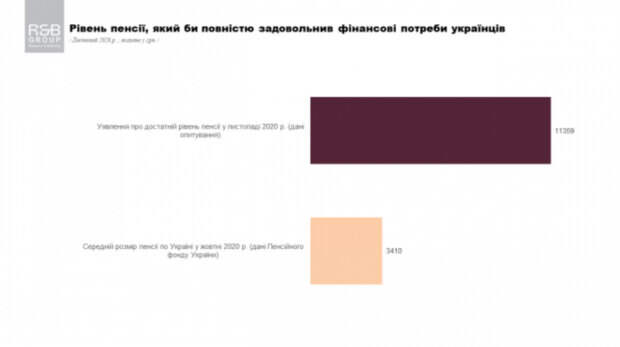 Украинцы раскрыли, какой размер пенсии считают достаточным для комфортной жизни Соответствующий опрос провела компания Research & Branding Group. Его участникам предлагалось назвать, какой уровень пенсии они считают приемлемым для себя. В результате средний размер достойной пенсии по мнению украинцев составил 11 359 гривен.