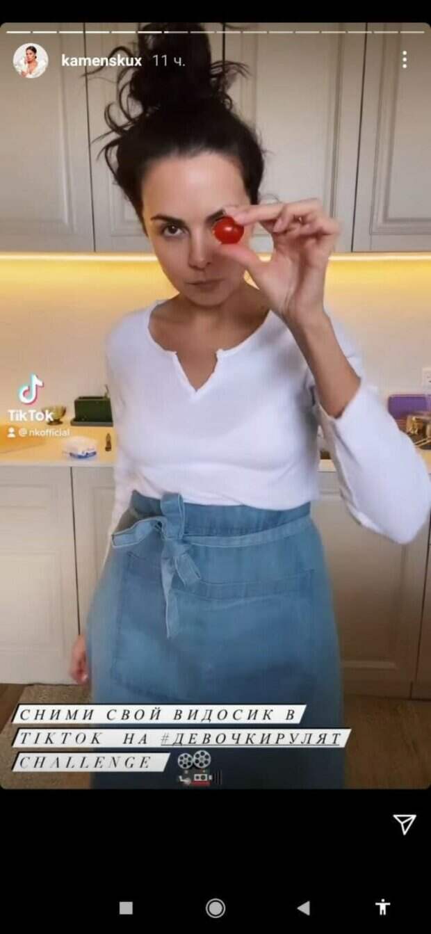 После в ролике в своей шутливой форме Каменских показала, как быстро варит спагетти, а затем достает расплавившийся в духовке сыр с помидорами и размешивает его вместе со спагетти. «Приготовление блюд для меня - это тоже творчество, в котором можно экспериментировать и придумывать что-то новое