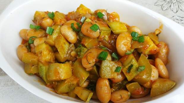 Попробуйте приготовить блюдо по этому рецепту с добавлением фасоли и поймете, что бывают новые рецепты блюд из кабачков. Продукты: Кабачки (или цукини) - 600 гр. Фасоль консервированная - 220 гр. Помидоры - 300 гр. Лук - 200 гр. Чеснок - 1 зубчик. Морская соль с травами (можно обычную) - по вкусу Черный молотый перец - по вкусу. Травы Греции - 1 ч.л. Оливковое (подсолнечное масло) - 2 ст.л. Зелень - для украшения. Видео: приготовление блюда из кабачков и фасоли [embed][/embed]Прочитайте, что в соцсетях написали люди, которые просмотрели это видео:“Спасибо за рецепт ! А жидкость из фасоли надо сливать ? Просто добавить фасоль или потушить с ней?”“Как всегда — доступно, просто и бюджетно. А главное — по сезону то, что нужно, спасибо огромное!”“А если болгарский перец добавить ещё я хочу сейчас готовить. Спасибо за рецепт.”“Благодарим за вкусное вегетарианское блюдо.”