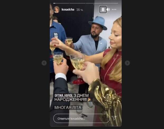 Тина Кароль в компании Юрия Горбунова, Кати Осадчей, Нади Дорофеевой, Монатика и Олега Винника пропустила по бокалу шампанского. "Меня взяли в плен, спасите меня...", - заявила сперва Тина Кароль, улыбаясь на камеру. "Классный плен. Тут кормят, наливают, - ответил ей Юрий Горбунов. Позже звезды украинского шоу-бизнеса начали поздравлять Тину Кароль с днем рождения, желая ей счастья и здоровья. "Тина, будь в этом плену всю жизнь. И пусть тебя никто не выдернит из твоего мира, где ты живешь в кайф. Многая лета", - озвучил свое поздравление Олег Винник. "Каждый день счастья. Прям с самого утра", - добавил Юрий Горбунов. Ранее мы рассказывали, как Катя Осадчая ошеломила снимком с роскошной Тиной Кароль. Тина была одета в яркое платье на замочке. Ее волосы были выпрямлены. Она смотрела в кадр и искренне улыбалась. Осадчая была одета в золотистое платье с декольте. Она делала селфи, радостно прижмурившись. Так, телеведущая решила сделать селфи с именниницей Тиной Кароль, которая отмечала в тот день 36-летие. Напомним, что Строгая Кароль пристыдила Винника на "Голосі країни" А еще Politeka писала, что Горбунов случайно засветил располневшую Кароль Также Politeka сообщала, что Влюбленную Тину Кароль засекли в компании бритоголового красавчика, личные кадры