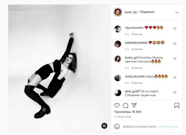 Девушка стояла у стены, начиная демонстрировать гибкость. Кадры получились довольно эффектными, но актриса подписала их с юмором: "Как хорошо, что вы не слышите хруст в коленях". Фанаты посмотрели ролик более 15 тысяч раз и написали комментарии: "Танечка, самая горячая в мире, ну, как всегда", "Матрица", "Суперовая", "Завораживающая", "Ничего себе", "Очень круто", "Огонь, музыка идеально подходит", "Ля, что творит, соблазняет пацанчиков", "Я думаю, чего музыка так громко играет", "Никитину в пару", "А чего хрустят коленки, а, Танюша?". Мы писали, что известная украинская актриса Татьяна Песик блеснула формами в роскошном платье. Черное платьице сидело по фигуре артистки, и ей, вероятно, нравилось, как она выглядит. Татьяна стояла на пирсе на высоких каблуках, приложив руку к низу наряда, едва не засветив самое интимное. Напомним, брюнетка из "Женского квартала" сжала самый "сок" узким корсетом А еще Politeka писала, что брюнетка из "Женского квартала" в мини-платье показала лучший ракурс для подглядывания Также Politeka сообщала, что брюнетка из «Женского квартала» поиздевалась над Никитюк и ее псом, Леся не сдержалась