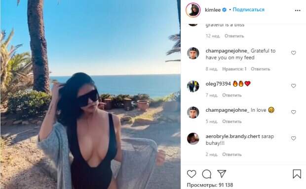 При этом личные фото без лишней откровенности не менее популярны. Ким Ли переехала жить в США не так давно, но уже стала узнаваема среди других альтернативных моделей. Девушка любит активный отдых и часто показывает, как веселится на пляже. На небольшом видео в профиле Ким показала роскошную фигуру, позируя в черном монокини. Вырез в ее купальнике был настолько большим, что Ли с трудом скрыла бюст. Для большей привлекательности девушка покрутилась перед камерой и показала себя с разных сторон, восхитив пользователей Инстаграм. «Красиво, очень красиво, вот так ты выглядишь; Горячий образ❤️❤; Сладкий, спасибо за угощение❤; Быть благодарным - это блаженство; Благодарен за то, что ты в моей ленте; В любви