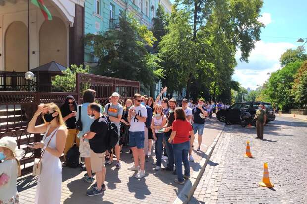 Между тем, у посольства с 7 часов утра выстроилась очередь. Люди съехались со всех концов Украины.