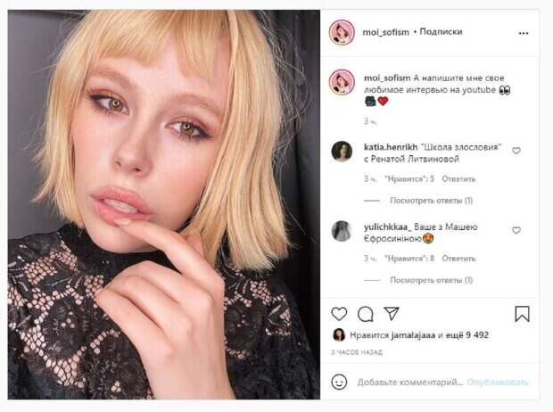 Об этом пишет Politeka.net со ссылкой на страничку знаменитости. "А напишите мне свое любимое интервью на youtube", - написала звезда под фото. Фанаты поставили почти 10 тысяч лайков и написали комментарии: "Соня - люблю", "Прекрасно", "Красотка", "Я смотрю у Маши Ефросининой и на Славе+", "Соня, вы прекрасны", "Красотки, ждём вас", "Уф, отвал башки", "Интервью с людьми с биполярным расстройством (одно из )", "Блин,ну красиво же! С этой прической, сама же видишь... и моложе,и стильно....крутышка", "А в Украине нет интервьюеров хороших, все заранее прописано, как по мне". Мы писали, что фотограф Соня Плакидюк удивила поклонников горячими снимками для мужского глянца. Звезда опубликовала в соцсети соблазнительные черно-белые снимки, которые, очевидно, украинцы смогут увидеть на страницах глянца. Как видно, для горячей фотосессии Соня выбрала образ в стиле Мэрилин Монро. Напомним, Плакидюк из "Супер топ-модель по-украински" показала кокетливый весенний образ, Астафьева не выдержала Также Politeka писала, что Плакидюк из "Супер топ-модель по-украински" подловила Дашу Астафьеву в тот самый момент А еще Politeka сообщала, что Плакидюк из «Супер топ-модель по-украински» избавилась от лифчика и комплексов