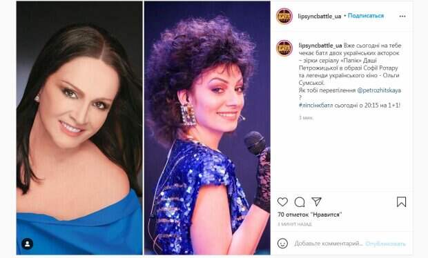 Завоевав огромную любовь публики, неудивительно, что легенду хочется копировать, а некоторым хоть раз примерить ее образ. Так, в шоу "Липсинк батл" Ротару решила скопировать актрису из сериала "Папик" Дарья Петрожицкая. На фото, размещенном в группе проекта, сравнили "оригинал" с "копией". София Михайловка предстала в голубой кофте, привлекая своей улыбкой, а Дарья - в образе певицы, который та носила в 80-х годах. Петрожицкая позировала с пышными кудрями и в блестящем наряде. "Уже сегодня тебя ждет батл двух украинских актрис - звезды сериала «Папик» Даши Петрожицкой в образе Софии Ротару и легенды украинского кино - Ольги Сумской. Как тебе перевоплощения @petrozhitskaya?", - написали авторы поста. Публикация собрала десятки лайков за считанные минуты. Напомним, на шоу "Липсинк батл" пародируют разных звезд. Главная задача участников – максимально убедительно воспроизвести песню, копируя мимику, внешний вид, манеру держаться на сцене оригинального исполнителя хита. А далее объявляют победителей. Участниками программы уже были: Надя Дорофеева, Мишель Андраде, Леся Никитюк и другие звезды. Напомним, что обманувшая старость София Ротару ошеломила внешностью в обычной жизни: "кроссовки, штаны и…" Как сообщала Politeka, 50-летний единственный сын Ротару выдал правду о своем состоянии, показав анализы на гепатит: "Готов. .." Также Politeka писала, что единственный сын Ротару показал свой почерневший и облезлый дом в Крыму: "Остались одни..."