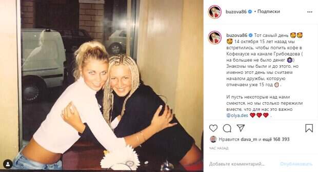 34-летняя российская певица и звезда проекта "Дом-2" Ольга Бузова ошеломила фото 15-летней давности и трогательным признанием Как передает Politeka.net, знаменитость опубликовала в своем микроблоге в Инстаграм архивный снимок, на котором предстала вместе с подружкой, блогершей Олей Десятовской. В кадре девушки обнимались, потянувшись друг к другу через столик в кафе.