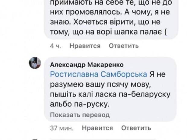 Как пишет местный Telegram-канал "Одесса INFO", такое заявление в адрес украинского языка он сделал в Facebook во время обсуждении новых правил государственного языка. "Я не разумею вашу псячу мову, пышіть калі ласка па-беларусску альбо па-русску. Я ня мовлю ўкраінскай мовой і паперы пышу па-руску, хоць ведаю яе. Для мяне гэта ваша ўкраінская мова - мова окупантаў та фашыстаў", - написал Макаренко. На ситуацию уже отреагировали в руководстве колледжа. Замдиректор по образовательной работе Наталья Федорова утверждает, что в учебном заведении не будут терпеть такие высказывания преподавателя. Федорова заявила, что они выясняют у детей, не пропагандирует ли преподаватель ненависть к украинскому языку. Тем временем активисты уже пожаловались на Макаренко языковому омбудсмену Тарасу Кремню. Напомним, что на Привозе разгорелся новый скандал из-за украинского, видео: "Дебильный язык" А еще Politeka писала, что на Одессу движется мощный циклон с градом и шквальным ветром, синоптики бьют тревогу Также Politeka сообщала, что названа болезнь, которая больше всего уносит жизни одесситов: и это не коронавирус