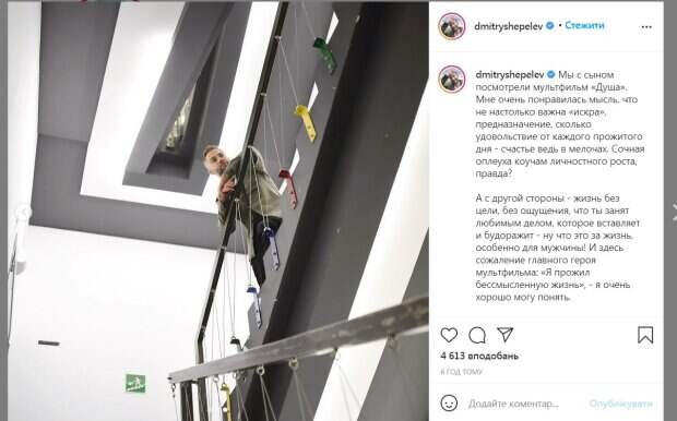 Екатерина Тулупова ждет от него ребенка. Поэтому стабильный доход шоумену очень нужен. В новом посте в Инстаграм Шепелев поделился рассуждениями о человеческом предназначении. К таким мыслям его подтолкнул просмотр с сыном Платоном мультфильма «Душа». «Мне очень понравилась мысль, что не настолько важна «искра», предназначение, сколько удовольствие от каждого прожитого дня - счастье ведь в мелочах. Сочная оплеуха коучам личностного роста, правда?» - отметил телеведущий. Также он признался, что прочувствовал переживания главного героя. «А с другой стороны - жизнь без цели, без ощущения, что ты занят любимым делом, которое вставляет и будоражит - ну что это за жизнь, особенно для мужчины! И здесь сожаление главного героя мультфильма: «Я прожил бессмысленную жизнь», - я очень хорошо могу понять», - отметил Шепелев. Пользователи Сети также обратили внимание на неудачи Шепелева в последнее время. При этом злоключения артистта даже связали с его бывшей женой. «У Димы одни неудачи в последнее время. Как будто Жанна не отпускает. Счастья вам», - написали в комментариях. Напомним, убитый горем отец Фриске не сдержался, узнав о беременности любовницы Шепелева: "Желаю, чтобы сдох..." Как сообщала Politeka, молодая любовница ждет ребенка от вдовца Жанны Фриске, раскрыты пикантные подробности: "Узнав о беременности Шепелев. .." Также Politeka писала, что на могиле Жанны Фриске проводят магические ритуалы, жуткие подробности: "Разбрасывают там лепестки роз и..."