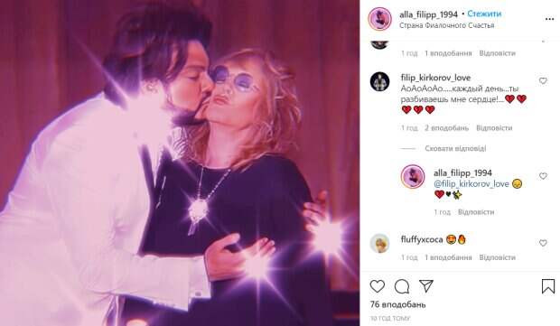 Популярный исполнитель Филипп Киркоров страстно расцеловал свою экс-жену Аллу Пугачеву у всех на виду Как сообщает Politeka.net, на фан-страничке Киркорова и Пугачевой в Инстаграм поделились архивным снимком, на котором парочка выглядит очень счастливой. На фото Киркоров страстно целует примадонну в щеку, а она, в свою очередь, зажмурила глаза от удовольствия и выставила вперед губки.