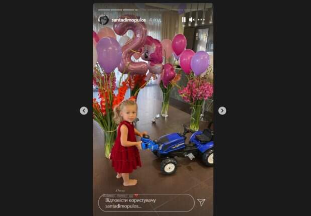 У пары даже родился сын Даниэль, но когда мальчику было два года звездная пара со скандалом рассталась. В 2015 году Димопулос снова вышла замуж. Ее избранником стал совладелец сети спортивных клубов Игоря Кучеренко. Через четыре года после свадьбы у пары родилась дочь София, которой в этом году исполнилось два годика. В своем Instagram Санта опубликовала кадры с празднования и показала как сейчас выглядит маленькая София. В целом звезда часто делится фотографиями с дочерью и публикует фото с девочкой. На этот раз Санта написала трогательный пост в котором поздравила маленькую Софийку с ее вторым Днем рождения. "Моя Вселенная, бесконечная любовь, моё сердце, с днём рождения
