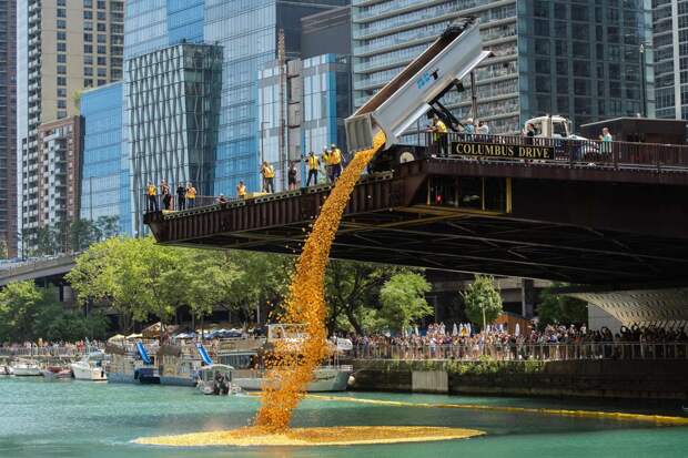В Чикаго прошел благотворительный заплыв, в ходе которого в реку сбросили несколько десятков тысяч резиновых уток. Об этом сообщает газета Chicago Sun-Times. Акция была организована некоммерческой благотворительной организацией Special Olympics Illinois, которая проводит соревнования для людей с ограниченными интеллектуальными возможностями.
