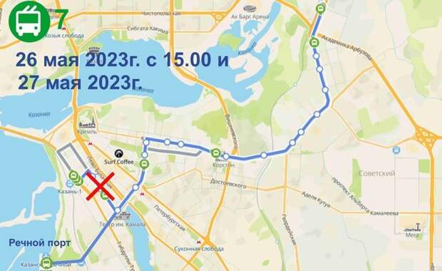 Халитова — железнодорожный вокзал» будет осуществляться до Речного порта. 27 мая, в субботу, в с связи с закрытием ул. Ташаяк движение троллейбуса №2 будет закрыто с 15.00 до 17.15, движение троллейбуса №7 «ул. Халитова — железнодорожный вокзал» весь день будет осуществляться до Речного порта. Фото: realnoevremya.ru/Ринат Назметдинов Также будет ограничено движение по некоторым улицам. Также во время подготовки и проведения марафона в Казани перекроют дороги и изменят маршруты общественного транспорта на ул. Ташаяк в период с 15 часов 26 мая до 22 часов 28 мая. Подписывайтесь на telegram-канал и группу «ВКонтакте» «Реального времени».
