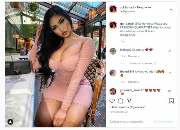 Известная модель Гюль Бахари, которую называют турецкой Кардашьян, показала себя на отдыхе На фото красотка сидела в коротеньком платье с большим декольте. Гюль, как можно увидеть, не любит носить белье, зато любит большие декольте. Волосы у модели были распущены, а сидела Бахари за столиком в ресторане, рядом можно увидеть женскую сумочку.