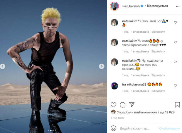 На свежем снимке Макс предстал в наряде из клипа. Поклонники были в восторге от резкой смены имиджа и цвета волос. Новый образ многим пришелся по вкусу. «Танцуй вопреки всему!», - подписал фото Макс Барских. В комментариях ему оставили массу восторженных отзывов. «Под ваши песни и танцуем», «Макс, не пропадай, мы скучаем», «Ооо! Из какого фантастического фильма этот космический красавец? Макс, ты очень крутой танцор, как Майкл Джексон!», «Макс, красавец. Хочется всегда танцевать под твои треки!», «Макс ты прекрасен», - пишут пользователи сети. Ранее мы писали, что Макс Барских поделился кадрами со съемок клипа, который снимали в пустыни. Поклонники расхвалили идею песни и ее реализацию, над которой трудились настоящие профессионалы. «Какая сложная и кропотливая работа проделана, зато результат просто бомбический», - пишут люди. Напомним, что Макс Барских в коже устроил переполох на сцене, заставив фанаток пищать от восторга: «Неземной…». Как сообщала Politeka, осмелевший Макс Барских в коже взбудоражил кадром с Аланом Бадоевым: "Сделали бутерброд". Также Politeka писала, что изменившийся внешне Макс Барских довел до мурашек кадрами, как в "Матрице": "Два сумасшедших...".