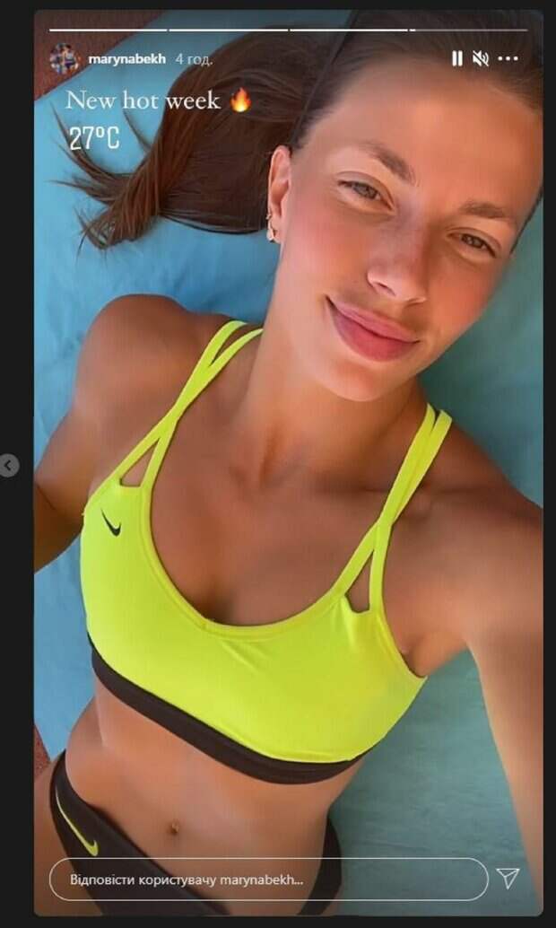 У девушки сотни тысяч фанатов в Инстаграм и Марина старается не разочаровать благодарную публику. В этот раз Марина в сторис опубликовала кадры, как отдыхает, лежа на полотенце. Девушка улыбалась, демонстрируя подтянутую фигуру. На красотке был зеленый топ и черные трусики. "Новая горячая неделя", - написала Марина под фотографией. Фанаты не смогли поставить лайки или написать комментарии, так как в сторис нет таких функций, но так и хочется добавить: "Лучше, чем в Лувре". Сообщалось, что украинская спортсменка Марина Бех-Романчук показала поклонникам новую фотосессию. На новых снимках Марина запечатлена в интересной локации на розовом фоне. Перед камерой она появилась в одних только темных джинсах, тогда как торс прикрыла красивым букетом нарциссов, заправленных в штаны. Этот удивительный наряд только подчеркнул соблазнительные формы и идеальную спортивную фигуру красотки. Напомним, украинская чемпионка Бех-Романчук блеснула красотой в купальнике и халатике Также Politeka сообщала, что украинская чемпионка Бех-Романчук сделала селфи в купальнике, сверкая "кубиками" пресса А еще Politeka сообщала, что украинская чемпионка Бех-Романчук после сборов показала фигуру, достойную зависти