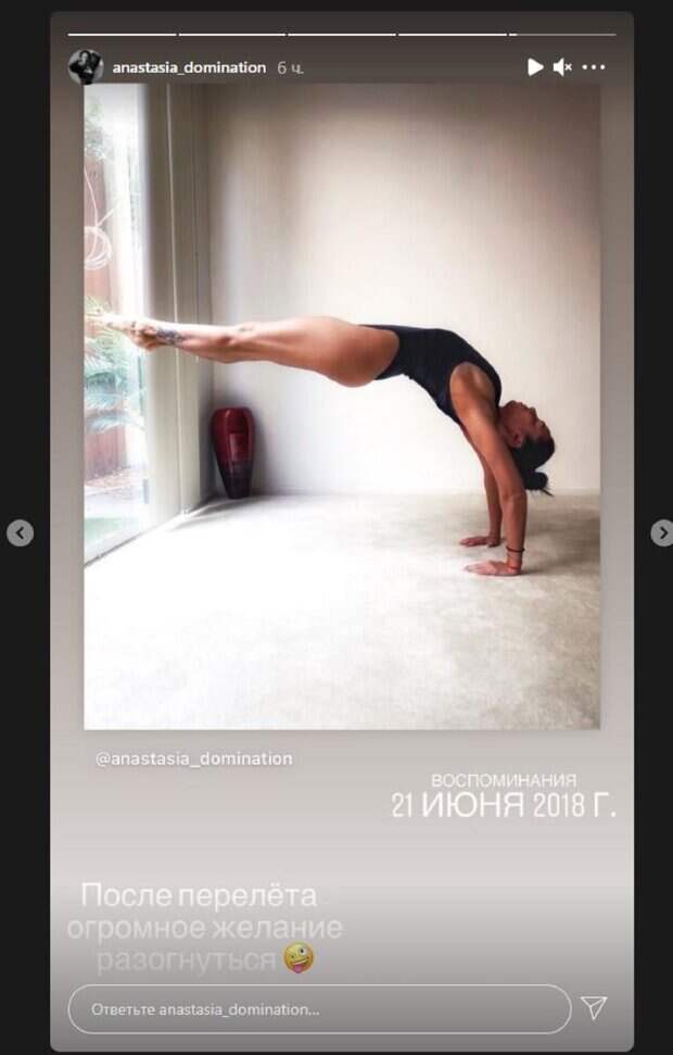 На фото, которое Кумейко опубликовала в Инстаграм, красотка позировала в боди. Девушка стояла на руках, выставив ровно ноги и впечатлив силой рук. Кадр получился не только эффектным, но и мотивирующим. "Воспоминания. 21 Июня 2018 года", - был подписан кадр. "После перелета огромное желание разогнуться", - написала Настя под фото. Фанаты не ставили лайки и не писали комментарии, но так и хочется добавить: "Нет слов". Напомним, известная певица Анастасия Кумейко показала свежие фото в сети. На новых снимках Настя запечатлена в интересной локации. На прогулку звездная красотка вышла в стильном образе – на ней длинное черное платье на тонких бретельках, поверх которого она накинула свободную темную рубашку. Этот наряд подчеркнул соблазнительные формы и пышное декольте красотки. Напомним, экс-Nikita Кумейко в мини-бикини вытянула ножки, радуя глаз А еще Politeka писала, что экс-Nikita Кумейко в смелом бикини показала фигуру на зависть всем девушкам Также Politeka сообщала, что экс-Nikita Кумейко распахнула блузу, восхитив формами в мини-бикини