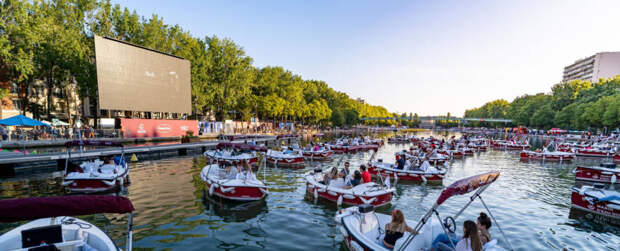 18 июля на речке Сена прошел первый показ фильма на "водном" кинотеатре.Как пишет Reuters, на берегу реки установили экран, на котором показывали комедию 2018 года Le Grand Bain (на рус. - "Счастливые неудачники"). Зрители смотрели фильм с 38 электрических лодок. Одна лодка вмещала до шести человек.Кинотеатр так и назвали - cinéma sur l’eau ("Кинотеатр на воде").
