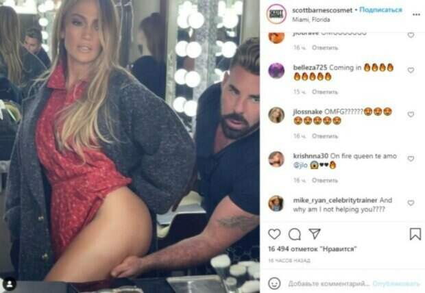И не забывает при этом Лопес также напоминать о своем косметическом бренде. Тем не менее, похоже, Дженнифер мало активности и она снова взялась за работу в съемках для очередного кинофильма. В этот раз Лопес успела появиться на площадке в красном платье довольно скромного дизайна. Тем не менее, не обошлось без неловкого казуса. Вставая с места, Дженнифер не рассчитала, что ее наряд может расстегнуться, а сама она покажет лишнее перед внимательными фанатами на площадке. Поэтому Дженнифер якобы случайно засветила фигуру с пикантного ракурса. Также в Инстаграм появилось фото с 51-летней знаменитостью, которая без смущения и намека на скромность подняла платье, позволяя гримеру разобраться с шиммером для тела. Намазавшись специальным средством для блеска, Лопес акцентировала внимание на пышных бедрах. До этого Дженнифер показала забавные моменты со съемок, как ухаживает за собой, как смотрит за детьми и даже как общается с мамой, которая также не выглядит на свой возраст. Примечательно, что артистка постаралась показать и естественную себя без фильтров. Поклонники не устояли, написав комплименты: «Мала Дженни прекрасна; такие милашки, кажется нереальным все; мне нравится ваш вид, вы значительно моложе; Заметили, тут даже пресс хорошо видно? Все хорошенькие!; ваша мама как сестра; почему так хороши; Обожаю это так сильно!; Прежде всего хвала вашим генам