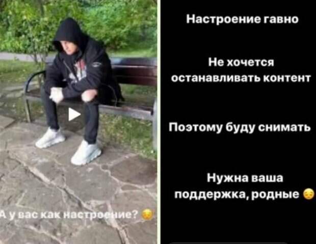 Рэп-исполнитель и видеблогер Давид Манукян, бойфренд звезды "Дом-2" и певицы Ольги Бузовой, огорошил признанием Как передает Politeka.net, DAVA (сценическое имя Манукяна) опубликовал в "сториз" в Инастаграм свежие кадры, рассказав о том, что происходит у него на душе. Блогер предстал сидящим на скамейке, в капюшоне, с понуренной головой.