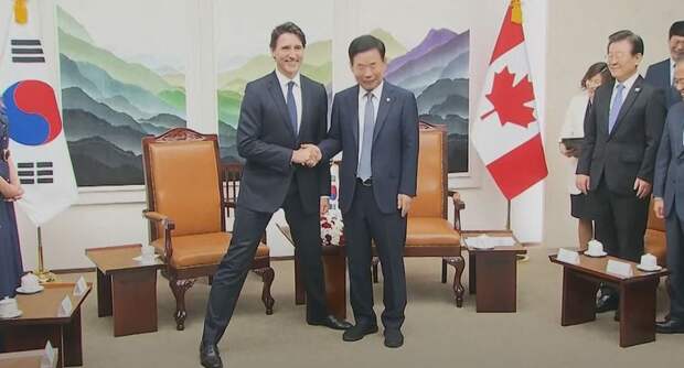 Премьер-министра Канады за его странное поведение в Сеуле назвали клоуном — Джастин Трюдо широко расставил ноги на встрече с председателем Нацсобрания Республики Корея Ким Джин Пе. На это обратил внимание обозреватель Toronto Sun Лорн Гюнтер.