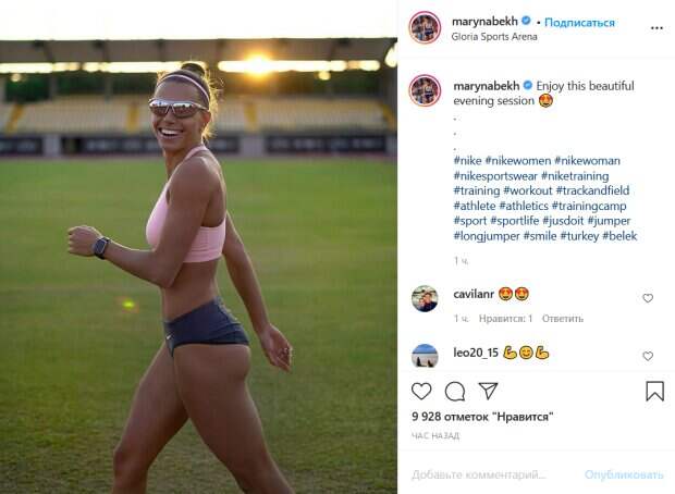Для тренировки она выбрала простой спортивный костюм в виде розового топа и очень коротких шортиков, которые оставляют ее ягодицы полностью открытыми. Такой наряд наглядно демонстрирует отменную фигуру легкоатлетки, которая много времени проводит за тренировками. Судя по всему, Марина и сама довольна результатом. «Наслаждаюсь этой красивой вечерней сессией», - подписала кадр спортсменка. Ее поклонники тут же принялись комментировать фото. «Красотка!», «Позитивная», «Отличный вид», «Красиво», «Совершенно потрясающе», «Ты выглядишь так, будто тебе это очень нравится, и ты выглядишь очень красиво», - пишут люди. Ранее мы писали, что Бех-Романчук засветила мускулистые ноги во время поездки по Европе. Как известно, 25-летняя Марина Бех-Романчук прославилась на всю страну своими победами и спортивным духом. Девушка не раз представляла Украину на международных соревнованиях и продолжает это делать. В этот раз Бех-Романчук отправилась в путешествие по Европе и выложила красивые снимки, сделанные в столице Германии – Берлине. Напомним, Бех-Романчук изумила роскошными ягодицами в мини-шортах, аппетитный ракурс: «Я так счастлива…». Как сообщала Politeka, Бех-Романчук в маечке восхитила рельефами, показав лучший ракурс: "Вызываешь восторг". Также Politeka писала, что Марина Бех-Романчук показала божественное тело во всей красе, пресс впечатляет: "Полна энергии".