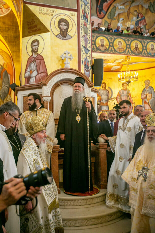 Торжества в Черногории В кафедральном соборе Воскресения Христова Подгорицы также состоялась торжественная Божественная литургия, которую возглавил иерарх Иерусалимской Православной Церкви архиепископ Катарский Макарий, которому сослужили представители Поместных Церквей, а также делегация Украинской Православной Церкви - управделами митрополит Бориспольский и Броварской Антоний и митрополит Тернопольский и Кременецкий Сергий. После литургии в соборе состоялась торжественная встреча Патриарха Порфирия и митрополита Иоанникия. Торжества в Черногории Митрополит Антоний (Паканич) от имени Митрополита Киевского и всея Украины Онуфрия зачитал поздравление новому Черногорско-Приморскому митрополиту и подарил ему архиерейский жезл, а митрополит Сергий - список Почаевской чудотворной иконы Божьей Матери.