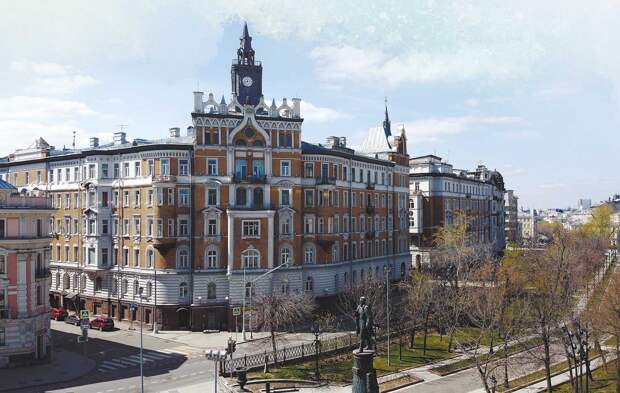 Точный адрес этого доходного дома получился сложным, по каждой из граней: Сретенский бульвар, дом 6/1, Фролов переулок, дом 6/1, Бобров переулок, дом 1 и Милютинский переулок, дом 22. В доме два корпуса, построенных архитекторами Николаем Проскурниным и Виктором Величкиным в 1899–1902 годах. Про страховое общество, чей вензель — буквы СОР — украшает ограду, надо сказать хотя бы, что это была крупнейшая российская компания добровольного страхования, основанная в 1881 году. Самое могучее среди русских акционерных обществ: его капитал в конце 1918 года достигал 109,1 млн рублей. В плане архитекторов дом был ещё громадней — проезда между Сретенским бульваром и Бобровым переулком не предусматривалось. Вдоль бульвара шла бы сплошная «крепостная» стена. Однако пожарные службы проект не утвердили: слишком далеко бы пришлось объезжать при пожаре. Так появились два неравных корпуса, проезд между ними и ворота, красота которых лишь добавила постройке элегантности. Ограду и ворота создал ещё один сотрудник «России» — архитектор Отто Вильгельмович фон Дессин. Архитекторы Николай Михайлович Проскурнин служил архитектором страхового общества «Россия» в Петербурге. Работал в Москве, Риге и других городах. Интересно, что ещё один доходный дом того же заказчика, построенный Проскурниным, тоже сохранился, хотя и был перестроен до неузнаваемости. Сейчас это здание ФСБ на Большой Лубянке, дом 2. Виктор Андреевич Величкин также состоял архитектором СОР, а среди его личных проектов в Москве самым знаменитым является гостиница «Савой». Основным стилем стала эклектика, смешение и слияние разных стилей: кружевные решётки балконов, эркеры и стрельчатые арки, башенки и башня с часами — итальянское Возрождение и готический замок. Решётки лестниц, козырьки и картуши над парадными подъездами, каминные полки, всё в этом доме — произведение искусства. Если снаружи здание напоминает огромный корабль, то внутри есть ещё дворы-колодцы, куда выходят чёрные лестницы. На плане видно, что корпусов как будто три, и в каждом внутренний двор, только одна треть отделена проездом и имеет острый угол, повторяющий слияние Боброва и Фролова переулков. Это здание стало на начало XX века самым технически оснащённым жилым домом Москвы. В нём было сто сорок восемь прекрасных квартир с высокими потолками, каминами и всеми условиями для комфортной жизни. В подвале дома размещались восемь отопительных котлов, насосы, вентиляционные установки под стать современным: с увлажнением воздуха и возможностью его подогрева. Освещение обеспечивала собственная электростанция, работающая на нефти. Питьевая вода добывалась из двух артезианских скважин — тоже современно и гигиенично. Лифты в доме электрические, шик-модерн! Кухни были оборудованы готовочными печами и мойками, ванные и уборные также соответствовали последним веяниям прогресса. В подвале и на чердаке находились прачечные, так что жильцам этих роскошных квартир надо было озаботиться только соответствующей прислугой. Впрочем, для неё места в квартирах хватало. Разумеется, конструкция дома не предусматривала мусоропровод, впрочем, и сейчас в Москве достаточно таких домов. Всё остальное, о чём только мечтали состоятельные квартиросъёмщики, было. К сожалению, со времён постройки этого чудо-дома окружающий пейзаж сильно изменился, и