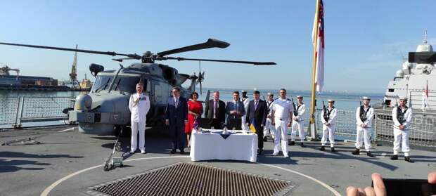 Украина и Великобритания подписали меморандум о строительстве двух военно-морских баз и помощи в получении новых кораблей для ВМСУ. Церемония прошла на борту ракетного эсминца HMS Defender, который зашел в порт Одессы, передает корреспондент «ПолитНавигатора». Украина ждет от Великобритании два тральщика типа «Сэндаун» постройки конца 80-х годов, которые сейчас находятся в составе Королевских ВМС.